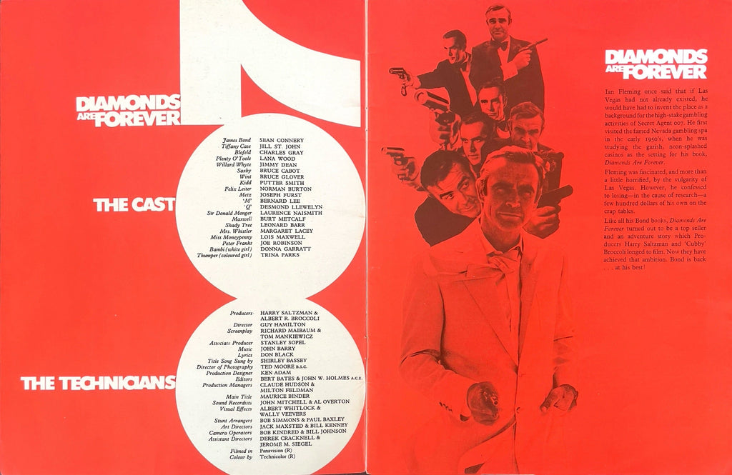 An original UK souvenir programme book for the 1971 Guy Hamilton English James Bond 007 secret agent spy espionage fantasy action adventure thriller