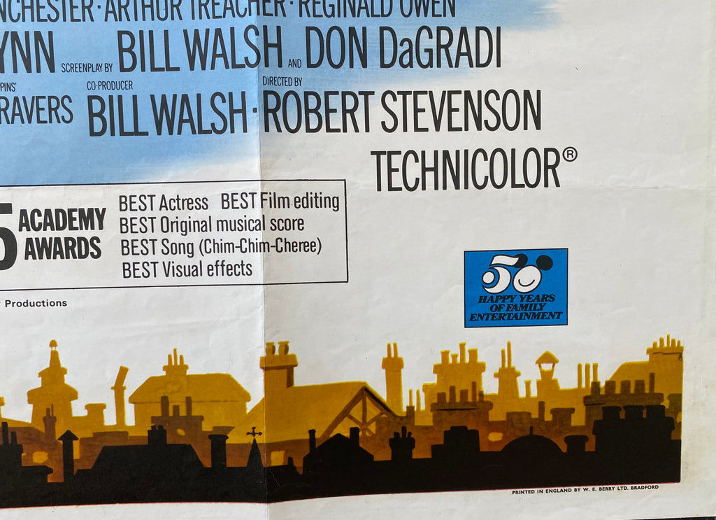 Original UK Quad 1973 re-issue poster for the classic 1964 Robert Stevenson (nominated for the Best Director Academy Award for this film) Walt Disney fantasy musical.